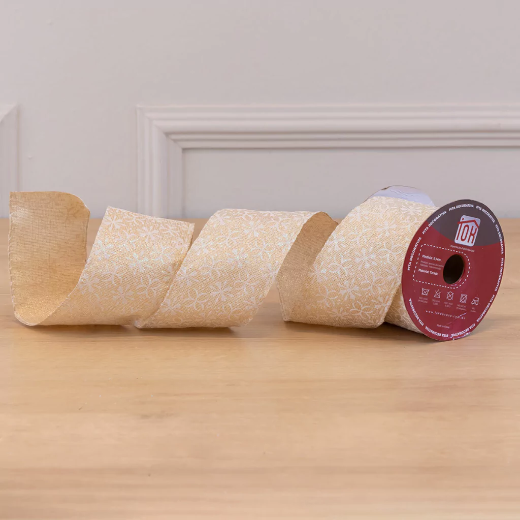 Adicione um toque de sofisticação e brilho sutil à sua decoração com a Fita Aramada Natalina em bege, decorada com desenhos em branco e acabamento em glitter. Com 6,3 cm de largura e 9,14 metros de comprimento, essa fita é perfeita para criar laços elegantes, enfeitar árvores ou dar um toque especial a guirlandas e arranjos. O contraste delicado entre o bege e o branco, realçado pelo brilho do glitter, traz um charme refinado e festivo à sua decoração natalina.