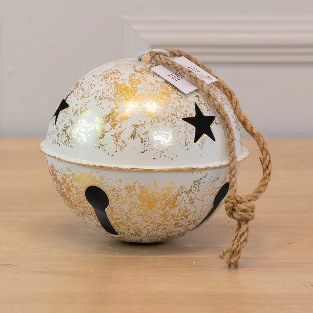 Este Guizo Decorativo de Natal com Corda da Florarte combina o estilo rústico com o brilho sofisticado do branco e dourado. Com 14cm de diâmetro, ele é perfeito para adicionar um toque de originalidade e beleza à sua decoração natalina.