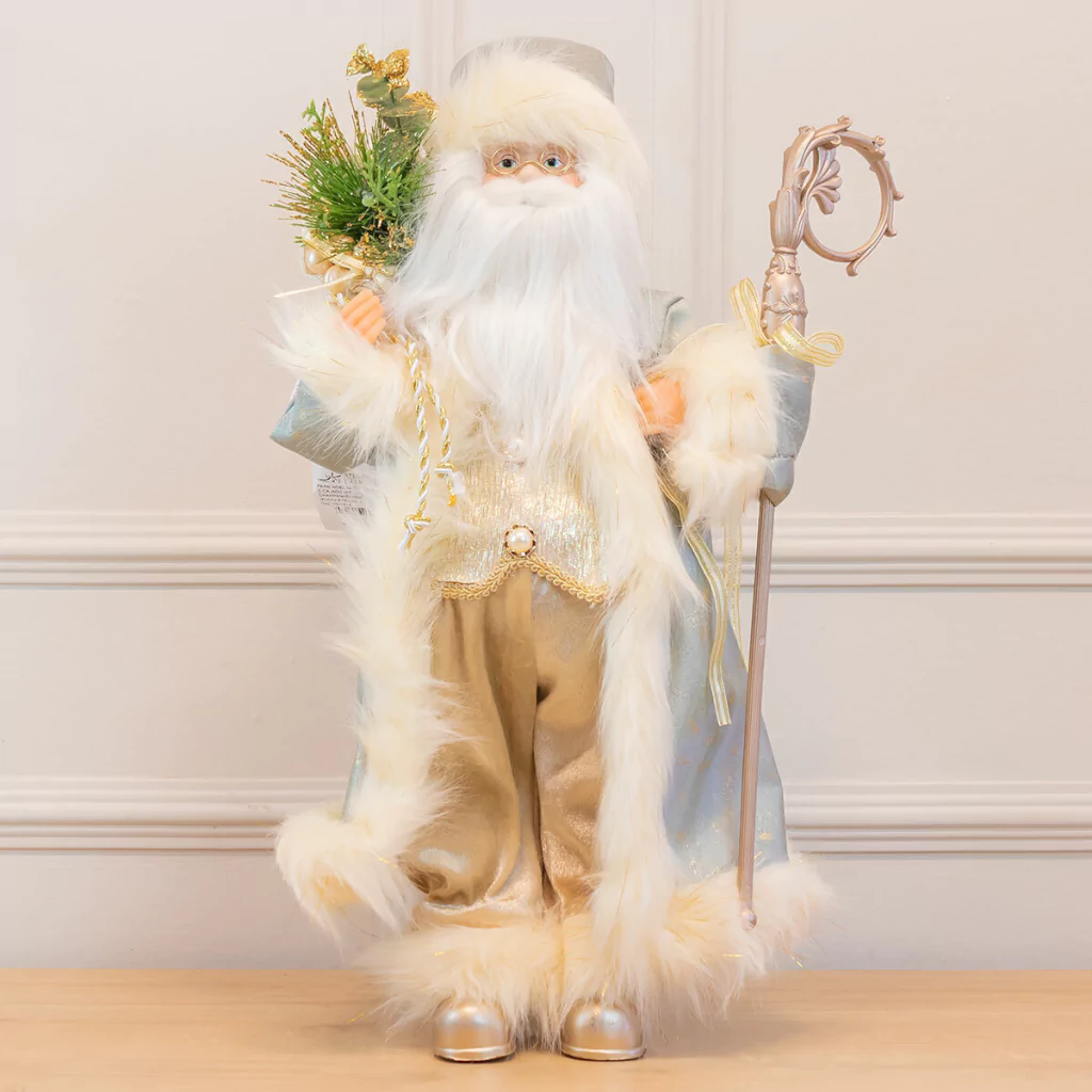 Leve a magia do Natal para sua decoração com o encantador Papai Noel em Pé com Cajado. Vestido com uma elegante combinação de azul e champanhe, ele exibe detalhes sofisticados, como um cajado dourado e acabamentos com pelúcia macia. Ideal para mesas, aparadores ou como destaque em ambientes natalinos, este enfeite de 45 cm adiciona um toque de requinte e tradição à sua casa. Aposte nesta peça exclusiva para surpreender seus convidados e deixar o Natal ainda mais especial!