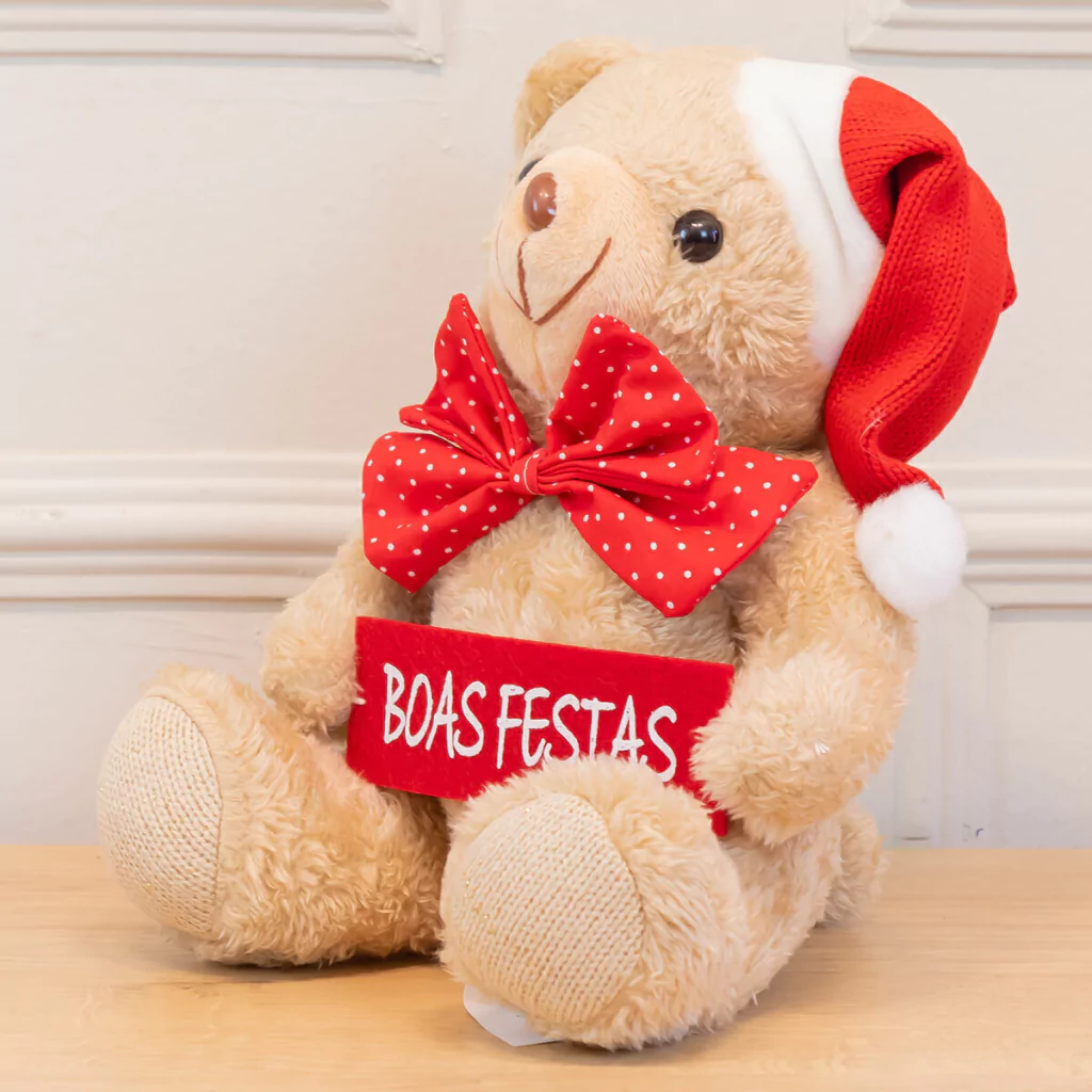 Encante sua decoração natalina com o Urso de Pelúcia Natalino com Gorro e Placa Boas Festas Vermelho 20cm. Este fofíssimo ursinho veste um gorro vermelho festivo e segura uma charmosa placa com os dizeres "Boas Festas". Perfeito para criar um ambiente acolhedor, decorar mesas ou prateleiras, ou até presentear pessoas queridas. Feito com materiais de alta qualidade, é um toque de carinho e alegria para o Natal. Altura: 20cm.